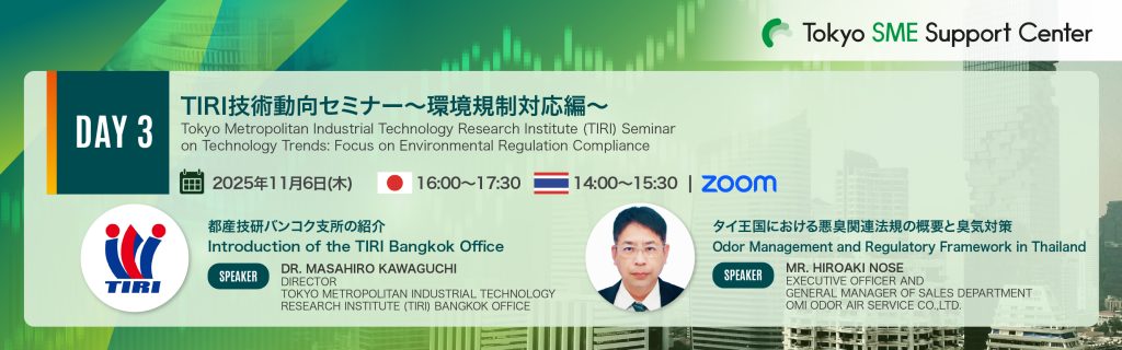この度、東京都中小企業振興公社(Tokyo SME)タイ事務所は、新規駐在員の方や日系企業で働くタイ人スタッフの方、タイ進出を検討中の皆様へ、計3,000件の相談実績に基づく企業経営上の留意点や、最新の業界・技術動向を現場目線でお届けするセミナーを開催します!